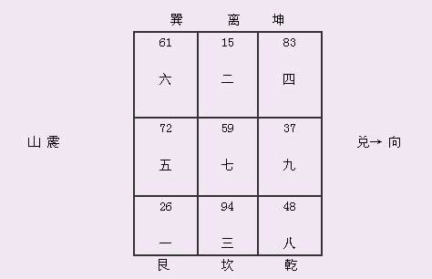 1)、将兑主大门封起,改为在乾方开大门,因飞星八白为大吉星,八在乾方(见图二),天天开门,即纳足八白大吉之气,想不发财亦难也。